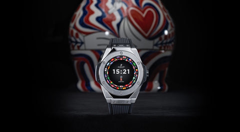 2018 means the FIFA World Cup™! For its 3rd participation as a Branded Licensee, Hublot has created the watch that all football fans and Hublot fans have been waiting for! A smart watch that will instantly connect you to every decisive second of the matches being played at the 2018 FIFA World Cup™. A much-anticipated innovation that could not have been imagined by any other watch brand, given the extent to which Hublot and Football are as one. Not only is the footballing world going to march to the beat of the watchmaker, but now the pulse of the matches will reach its peak on your wrist! And although you’ll have to wait 85 days for the start of the Competition, you can wear connected football on your wrist in just one month time!