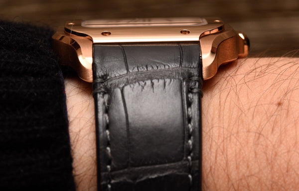 The Santos wouldn't be the Santos without screws in the bezel and bracelet. This is an element Cartier didn't mess with, which is a good thing. Born during a time when metal building construction was becoming popular, it was a point of modern industrial pride to have exposed screws on many early 20th century items – including some watches such as the Cartier Santos.